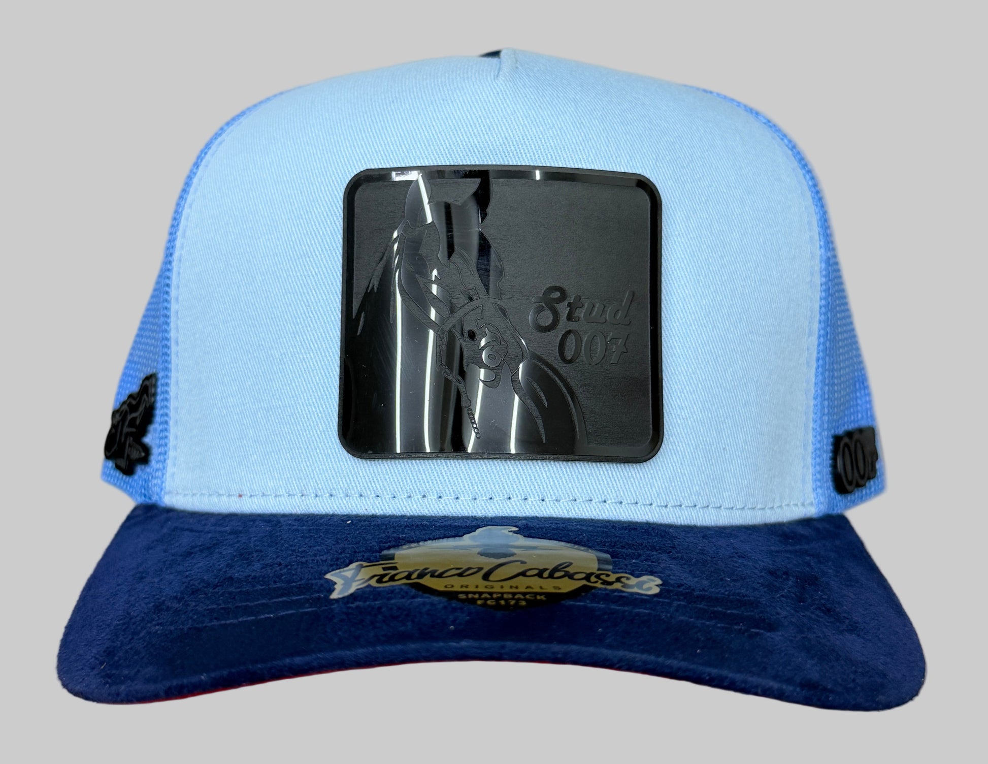 Premium Baby Blue Stud007 with Blacked out emblem Red Bottom